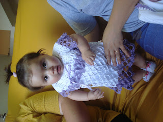 O vestido ficou uma graça mas a bebé é mesmo muito linda.A minha neta, quando era mais pequenina também usava o cabelinho assim. Ficam tão giras!
